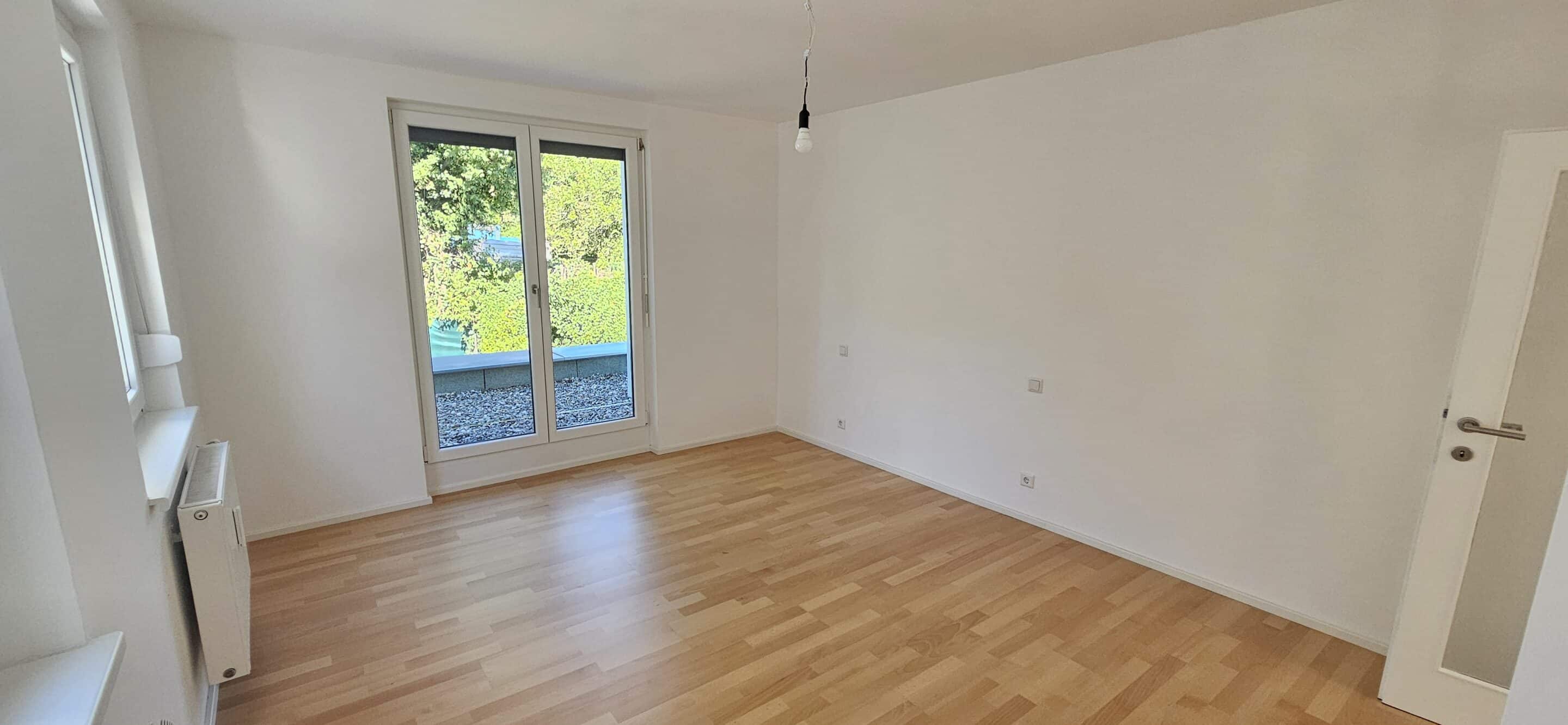 EG: Vorraum, WC, Küche und Wohnzimmer mit direktem Zugang zur Terrasse, Patio und Garten,