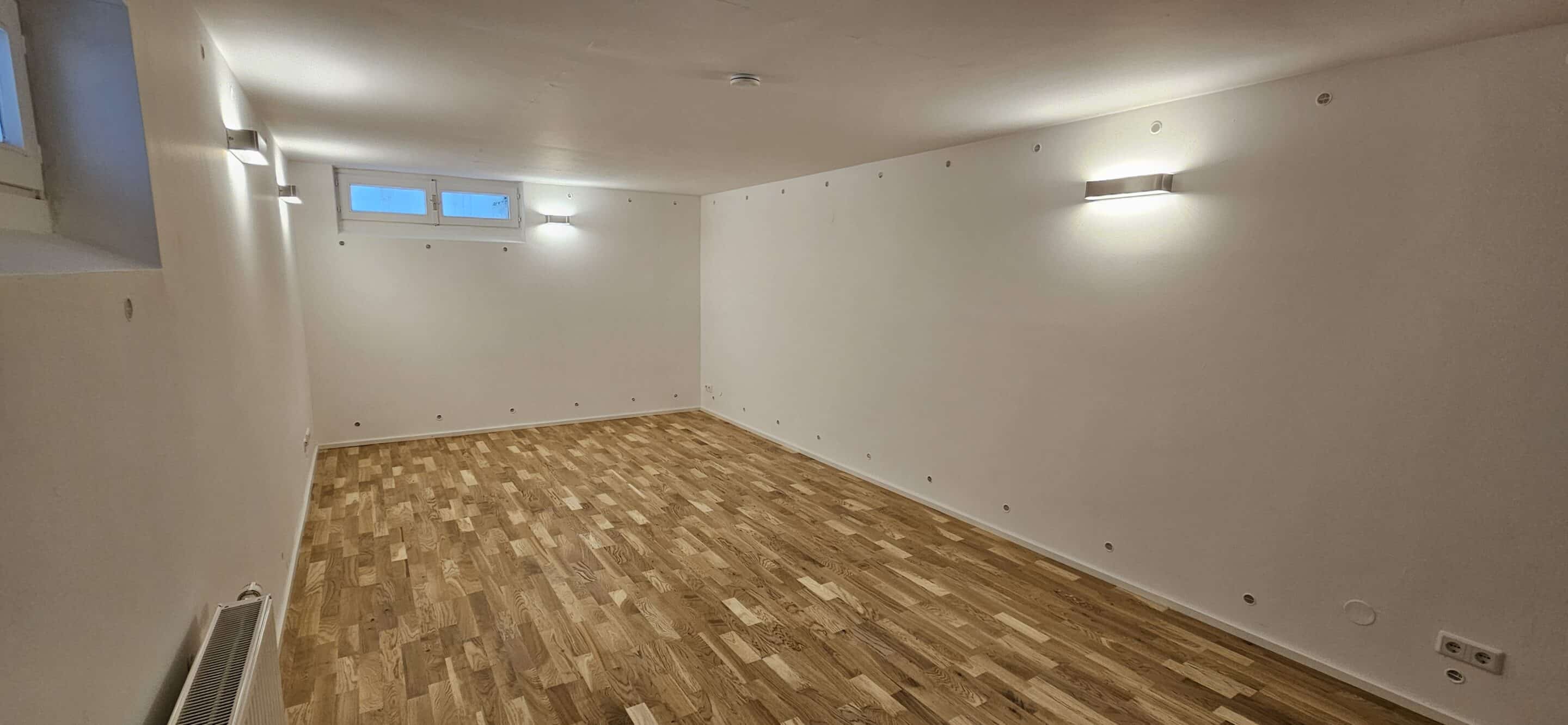 UG: Partyraum bzw. Hobbyraum, Badezimmer mit Dusche und WC, Keller-Wirtschaftsraum. Zugang zur Tiefgarage