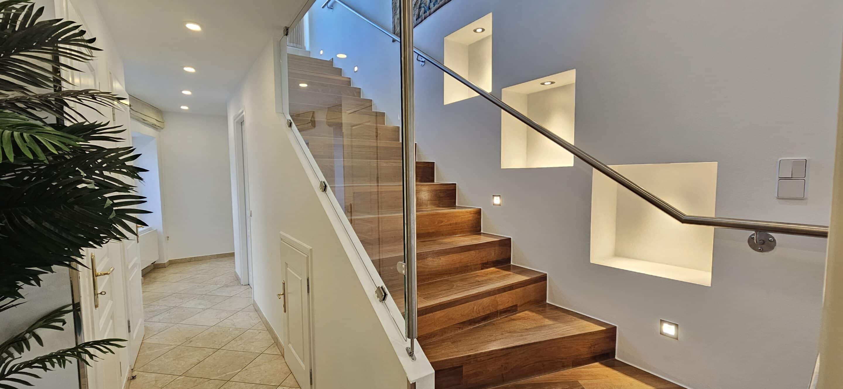 Lift, Klimaanlage, Alarmanlage, Tresor, Fußbodenheizung im oberen Geschoß, Fenster in allen Badezimmern, Boden mit Naturstein und Parkettboden, Dachterrasse mit 360 Grad Panoramablick.