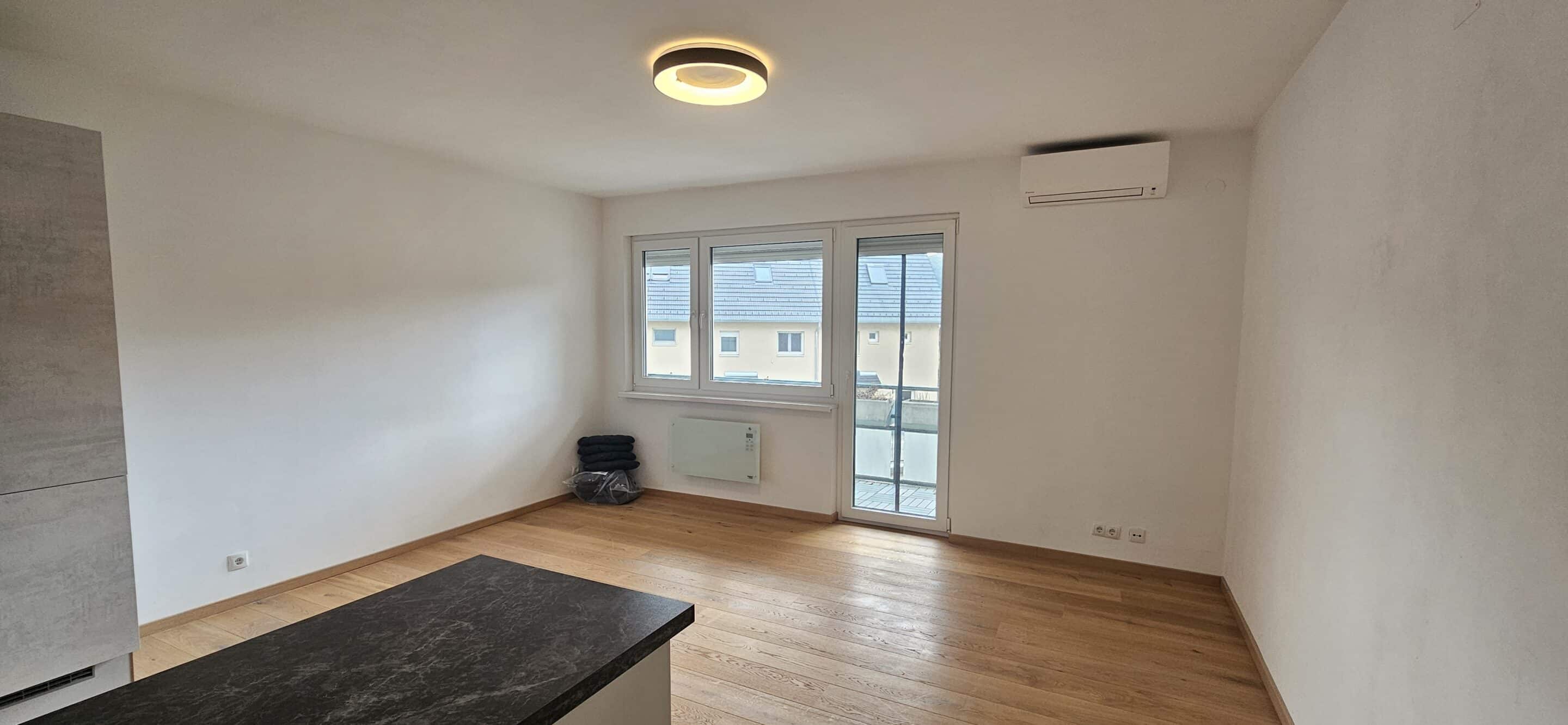Die helle 2-Zimmerwohnung befindet sich im 1. OG ohne Lift und verfügt über ca. 49,55 m². Sie besteht aus einem Vorraum, einem Badezimmer mit Badewanne, einem großen Schlafzimmer, einem großzügigen Wohnzimmer sowie einer großen Loggia mit südöstlicher Ausrichtung (ca. 7,95 m²). Die Wohnung verfügt außerdem über ein Kellerabteil (ca. 4,27 m²). Eine Garage für einen Pkw mit automatischem Garagentor ist im Preis inbegriffen.