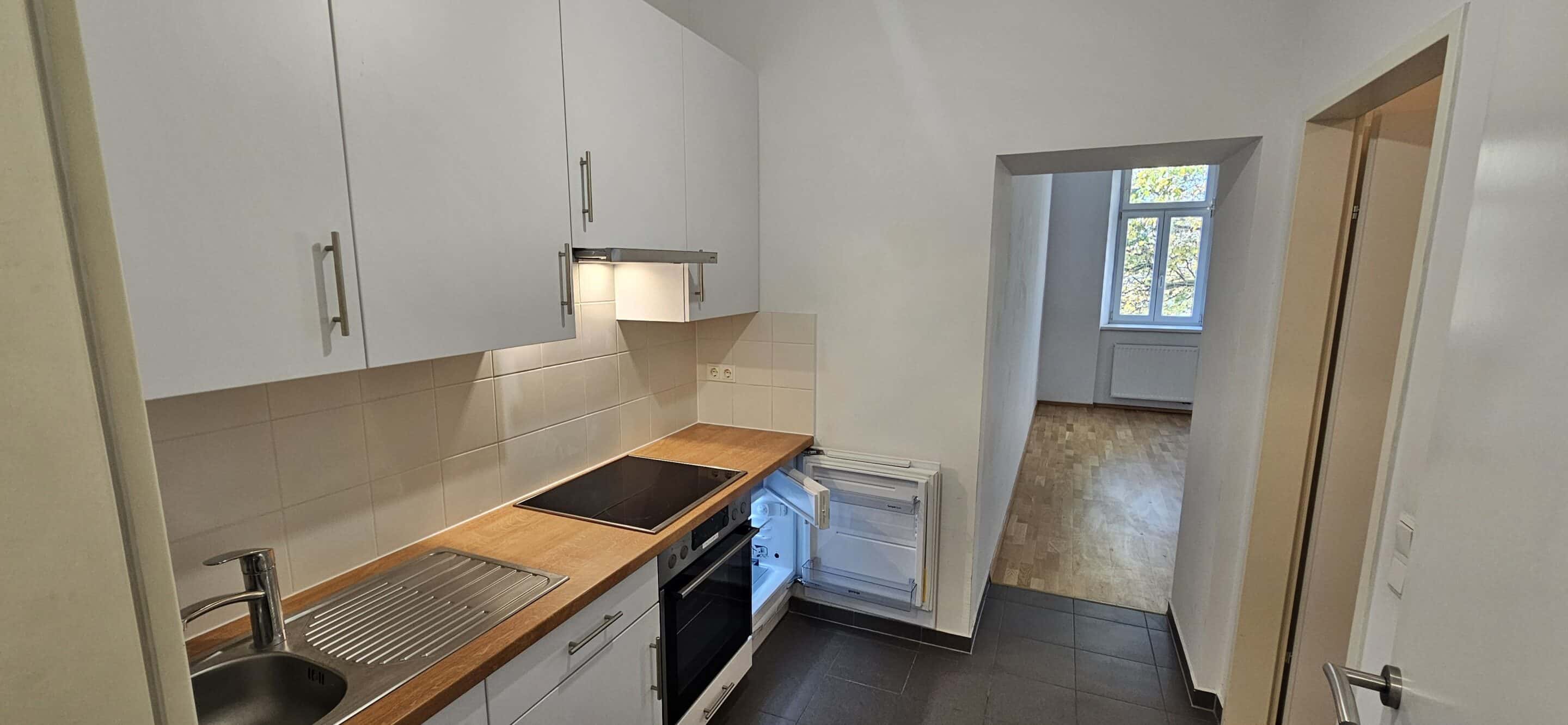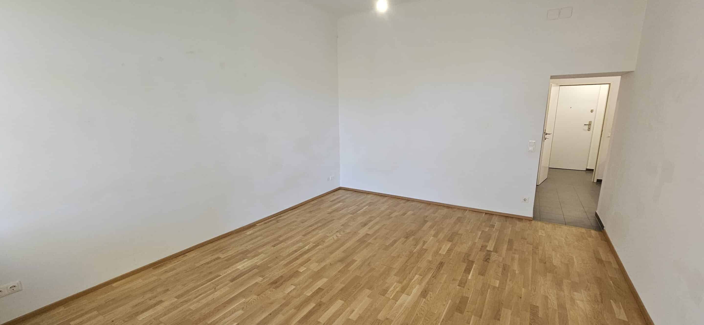 Die Wohnung besteht aus einem Vorraum, einem Badezimmer mit Dusche, WC und Waschmaschinenanschluss, einer voll ausgestatteten Küche und einem großzügigen Wohnzimmer. Die 1-Zimmerwohnung wurde vor Kurzem saniert.