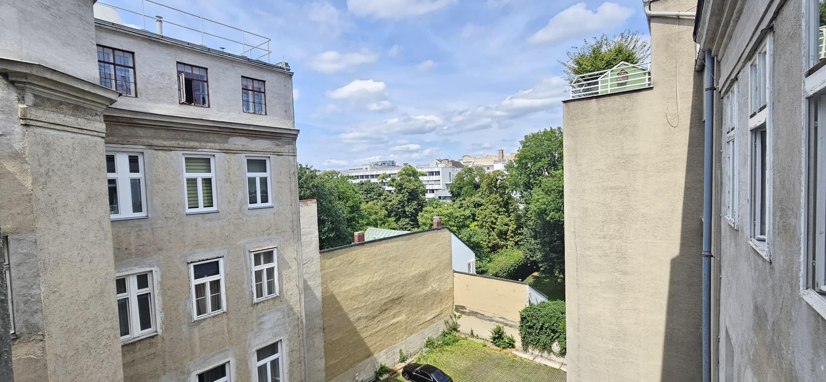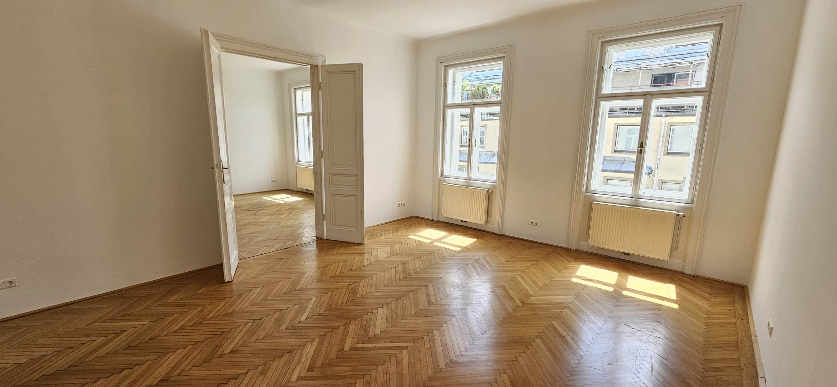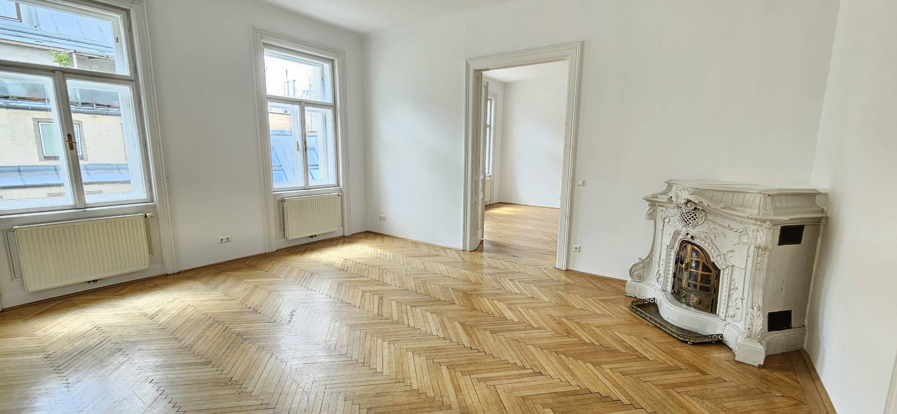 Die ruhige 3-Zimmer-Altbauwohnung mit ca. 103 m² befindet sich im 3.OG + Mezzanin in einem eleganten und imposantenGebäude mit Lift und besteht aus einem Vorraum, WC, einem Badezimmer mit WC, einer getrennten Küche, zwei Zimmern und einem großzugigen Wohnzimmer.