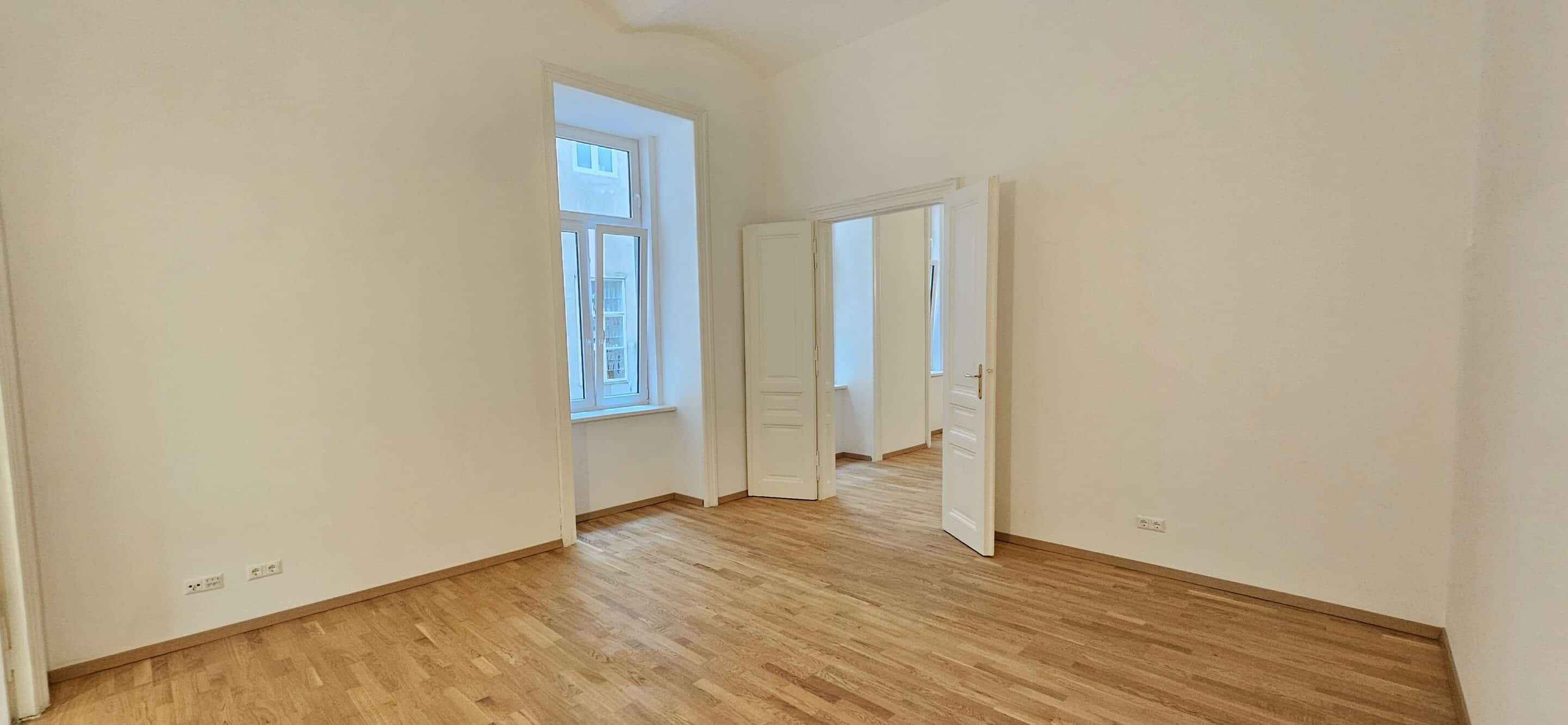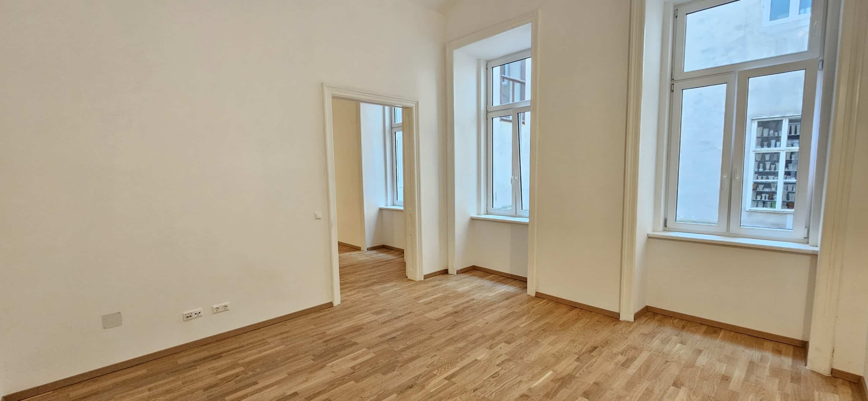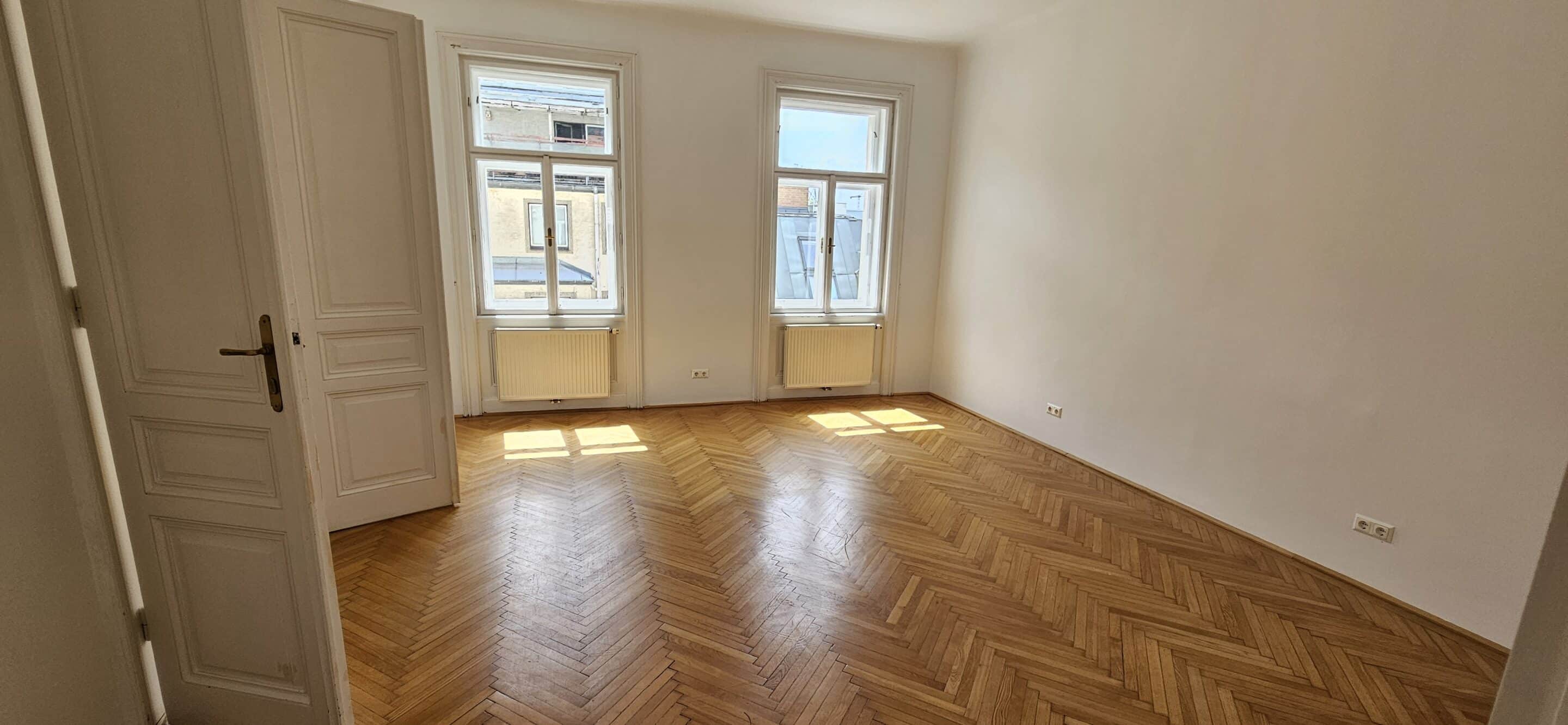 Die ruhige 3-Zimmer-Altbauwohnung mit ca. 103 m² befindet sich im 3.OG + Mezzanin in einem eleganten und imposantenGebäude mit Lift und besteht aus einem Vorraum, WC, einem Badezimmer mit WC, einer getrennten Küche, zwei Zimmern und einem großzugigen Wohnzimmer.